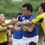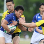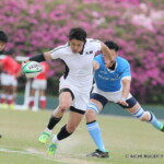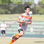 さらに、前半5分、相手陣22m付近で、福井がターンオーバーに成功、獲得したボールを持った③下島がラックサイドを突き、左隅にトライ、0-19と突き放す。
