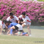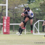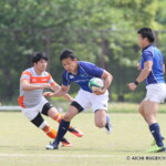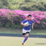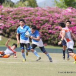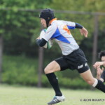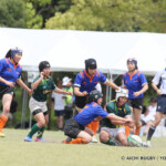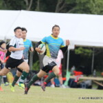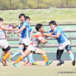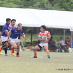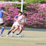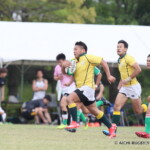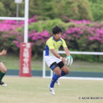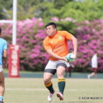 しかし、開始早々、三重がシンビンで1名少なくなるなか、愛知がゴール前でフェイズを重ね、③小迫がゴールポストカバーへトライ、さらに、後半3分にも⑦門脇がトライを重ね、15-5とリードする。