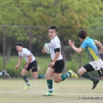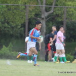 前半4分、愛知Bが連続攻撃で右から左への展開から⑰池本が縦に突き、左中間へトライ(ゴール成功)で、7-0と先制する。