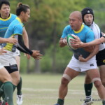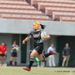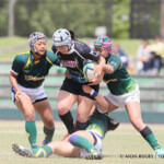 しかし、ここから三重が、後半5分、自陣ゴール前から⑥アシェリーからディフェンスを振り切りパス、⑫伊藤が左サイドを走り切りトライ(ゴール成功)、15-12とすると、ノーサイド寸前、ハーフウェイライン付近で得たペナルティから、⑨ジョージアが抜け出し、トライ(ゴール成功)により、15-19とし、三重が試合を制した。
