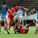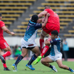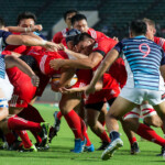 18分 神戸製鋼のペナルティから、サニックスは敵陣ゴール前5mまで攻め込み、初のスコアチャンスを得るも、神戸製鋼・粘りのDFの前にノックオンを犯し、得点ならず。