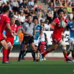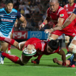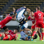 37分 サニックスは敵陣22mラインからSO10エスターハイゼンがPGを決め、3点を先制する。