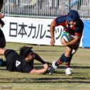 8分には、自陣22mで相手のノックオンからパスを受けたWTB11番中野豪が相手のデフェンスを次から次と抜き去りゴールポスト右に独走トライ、GKもSO10番松永拓朗が成功し、14-0。