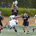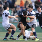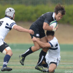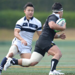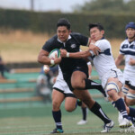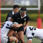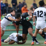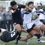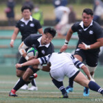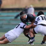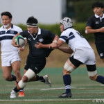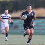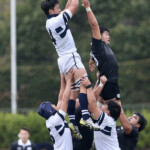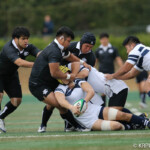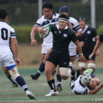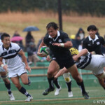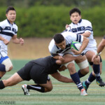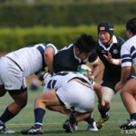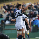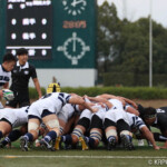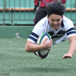 25分には、関大がスクラムを押し込みヘッドアップの反則をさそう。ゴール前のラインアウトを選択し、モールからラックへとFWがこだわり、最後はHO②淡野徳蔵が密集から飛び出し押さえる。(ゴールも決まり)0-14とリードを広げる。
