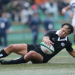30分、キャプテンCTB⑫山下真之介が中央突破、個人技で相手をかわし中央にトライ。WTB⑪田中晴哉がゴールを決め7-14と一本返す。