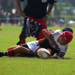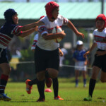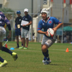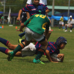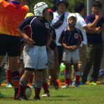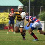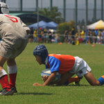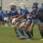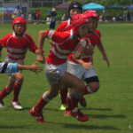 今回、初の合同チームでの参加となります。春先から今年前半のターゲットとして練習を重ねてきました。今年のチームは体格差を埋めるべく、全員が走り回って、早いパス回しで展開するラグビーを目指しています。