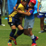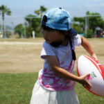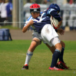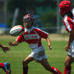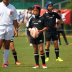 ともに、ラグビーを通して仲間との協調性を大事にすることを学び、心身ともに健全な児童の育成を目指しています。
