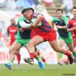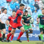 後半31分、キックカウンターからの攻撃を⑬鹿尾がトライ(コンバージョン成功)、さらに後半34分、ペナルティーの速攻からの攻撃を⑳クワッガがトライ。