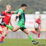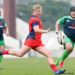 後半5分、相手陣ゴール前中央スクラムから⑧パディの縦攻撃で前に出ると左に展開、⑪マロに渡り狭いスペースを好走しこの日5本目となるトライ、0−43と、後半も幸先の良いスタートを切る。