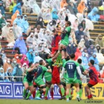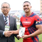 さらにジュビロは、前半24分、⑪マロのトライ(コバージョン成功)、前半26分、⑭ジェイデンのトライ(コバージョン成功)、前半37分、⑪マロのトライ、前半42分、⑭ジェイデンのトライ(コバージョン成功)と両ウィングがトライを量産、0−38と大きくリードし前半が終了した。