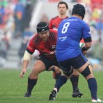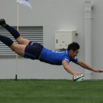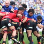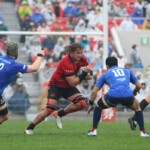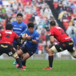 前半、ドコモは早々の5分、相手反則で得たPGをSO10番マーティ・バンクスが確実に決めて幸先のよいスタートを切った。