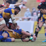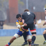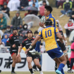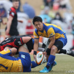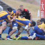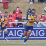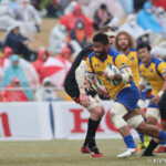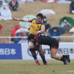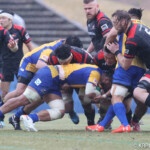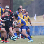 一進一退の攻防が続く中、次にスコアが動いたのは31分。Honda⑮レメキのゲインから⑩カーのキックパス。⑭生方が大外でキャッチし、サポートの⑥スクーマンがインゴールに飛び込みトライ。10-0とする。