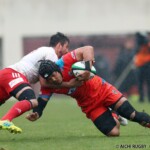 ゲームが動きかけたのは前半20分、ラインアウトからのスピアーズの猛攻から右隅に⑭近藤がトライ、と思われたがTMO判定でノートライとなる。