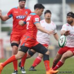 後半4分、相手ゴール前まで地域を進めるとゴール前中央でペナルティーを獲得。スクラムを選択してフェーズを重ねると、⑩クロニエの絶妙な裏へのキックを⑫スワートがインゴールで抑えトライ、コンバージョンも成功し14-3と引き離す。