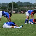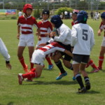 大会2日目は1日目と変わり朝から良い天気に恵まれ、気温も30度を超えウォータブレイクを取りながらの試合となり、それと合わせて2日間開催なので各チーム宿泊をしており夜更かしが多かったのか、睡眠不足と思われるような負傷等が多くドクター2名がグラウンド内を駆け巡っていただいておりました。これは各チームの指導管理体制に少し課題が残ったように感じ取れました。といっても、やはり2日目の試合は前日の試合結果による組合せとなっているためチーム力が均衡しており白熱のあるゲームとなりました。