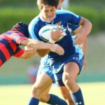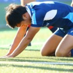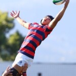 後半もお互いキックの応酬でスタート。4分に近畿大自陣でオーバーザトップの反則、25m付近の正面、京都産業大10番・高原気負ったか、これを外す。8分には京都産業大が敵陣22m付近ラックから左へ展開、6番・眞野が近畿大ディフェンスとぶつかりながらも強引に近畿大ゴールを陥れた。ゴールは成らず、18-10とした。