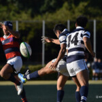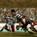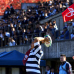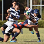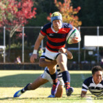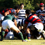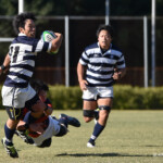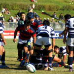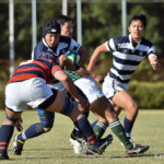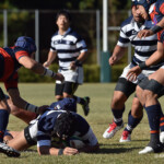 後半は風上を活かしたい関学だが、キックを使わずゴール前までボールを運び、4分に⑨徳田がトライ、ゴールも決め20-12と詰める。だが、16分にゴール前ラックから関大⑪原が持ち出しトライでまた引き離す。19分に関学⑩山田がトライを返し、再度8点差まで追い上げるが、その後、関大は⑩田村と⑫松本がトライをあげ41-19でゲームが終了した。