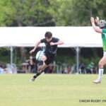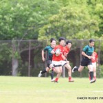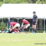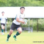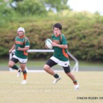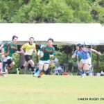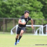 さらに、滋賀は、前半7分には、自陣10m付近の相手ノットリリースザボールのペナルティーから攻撃、ハーフウェイライン付近で、①川上がパスを受けるとスペースを突き抜け出し、ゴールポスト左へトライ、10-12と2点差に詰める。