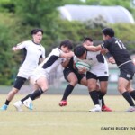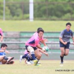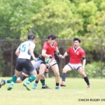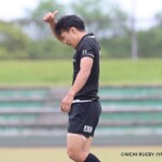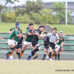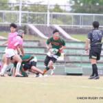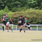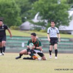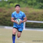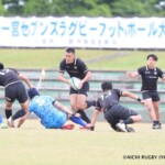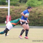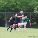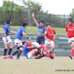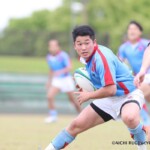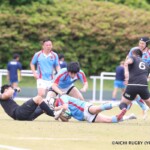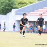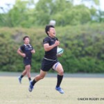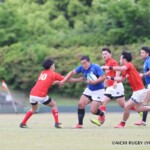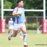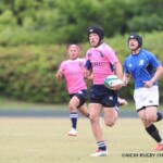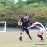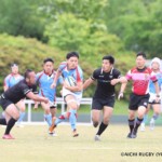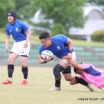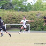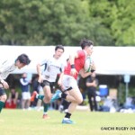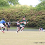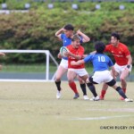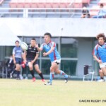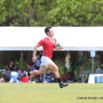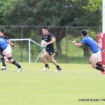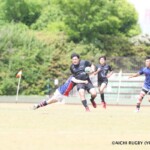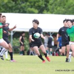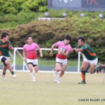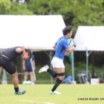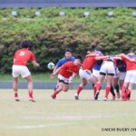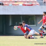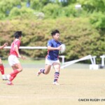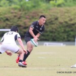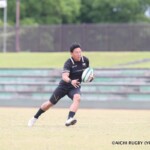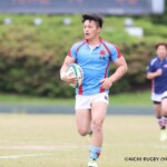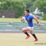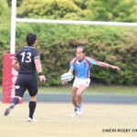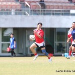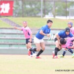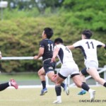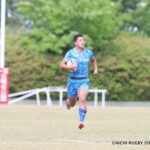 さらに、愛知は、後半4分、相手陣10m外側中央付近のスクラムから左へ、パスを受けた⑪塚本が左サイドのスペースを突き、ディフェンスの裏に抜け、ゴールポスト中央へトライ、コンバージョンも決まり、19-5とリードを拡げる。