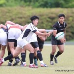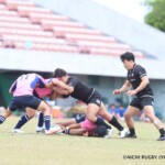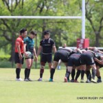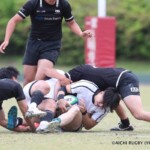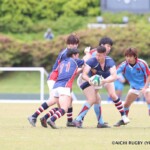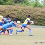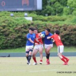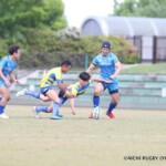 前半2分、大阪は、相手陣へ入るとゴール前を目がけてショートパント、ゴール前へ戻りキック処理を試みる愛知からノットリリースザボールのペナルティーを得ると、ゴール前右中間でラック形成からインゴールへボールを持ち込むも惜しくもグラウンディングできず、5mスクラムとなりスクラムから左へ仕掛け、①韋がトライをあげ、5-5とする。