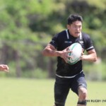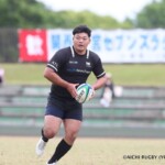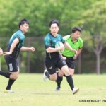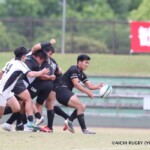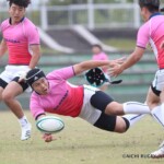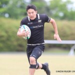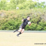 さらに、福井は、後半4分、自陣ハーフウェイライン中央付近のターンオーバーから、⑥西がショートパントで前方へ蹴りだすと、そのボールを自らバウンドを合わせキャッチし、ゴールライン右隅へトライ、31-10とリードを拡げる。