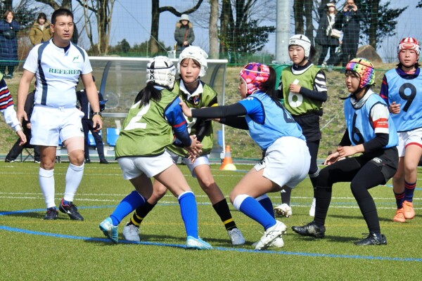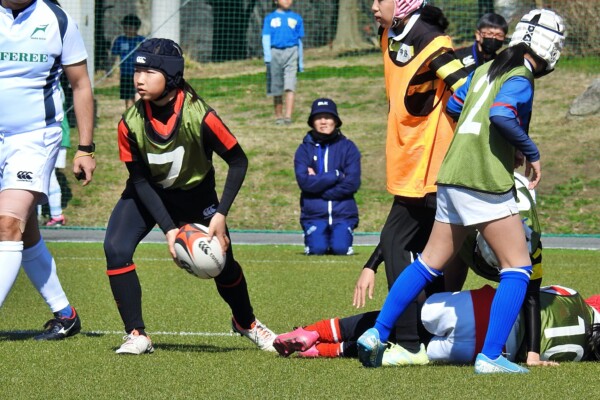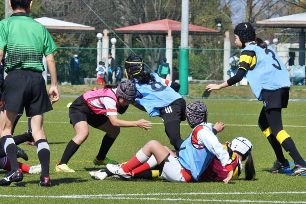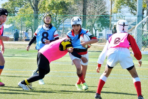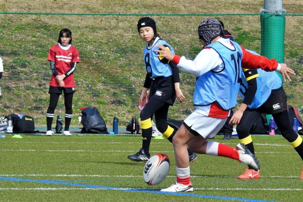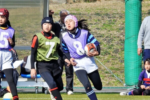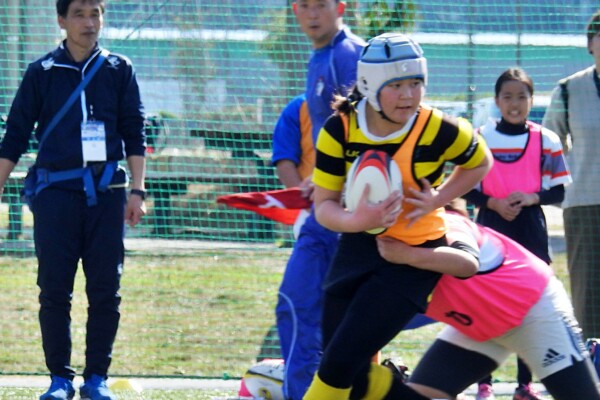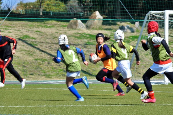 関西地区(22府県)では、数年前より関西ミニ・ラグビージャンボリー大会とラグビーマガジンカップ大会の中で女子交流試合の開催を試み、毎回40名~50名の女子小学生選手が参加し元気に楽しんでプレーをしていました。