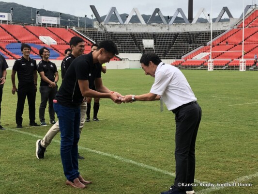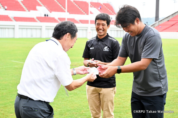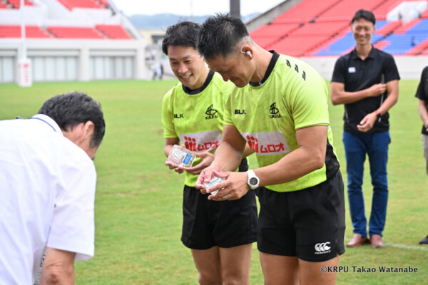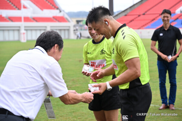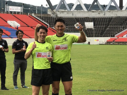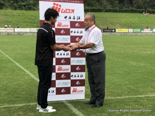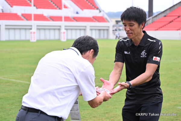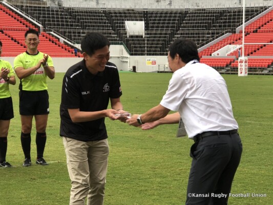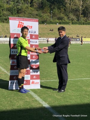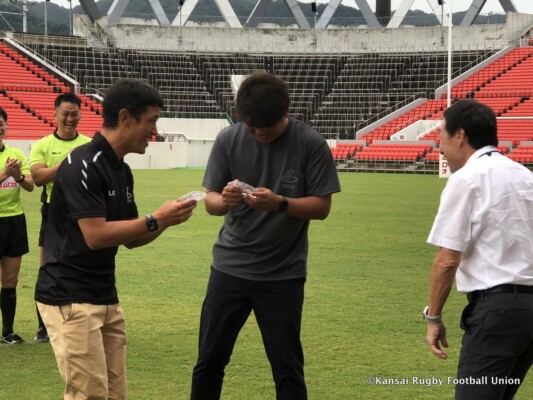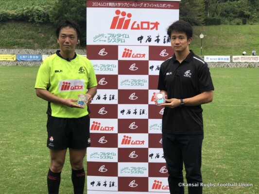 2024年度関西Aパネルレフリー認定盾を、ムロオ関西大学Aリーグの試合を担当後に授与いたしました。