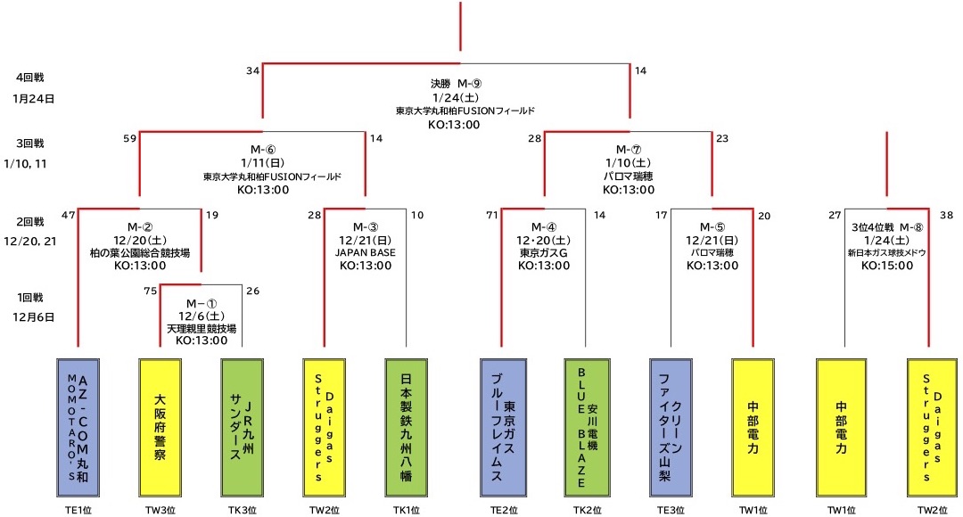 AZ-COM丸和 MOMOTARO’S(TE1位) 34〇-●14 東京ガスブルーフレイムス(TE2位)