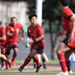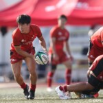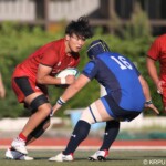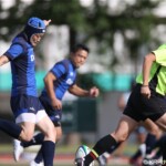 その後は、両チームとも相手陣に入っては反則やミスで自陣に押し戻される場面が続く。ようやく得点が動いたのは21分、敵陣中央10mL付近からのPKを10番SO金子が決め3点を追加した。(0−10)