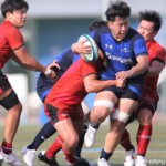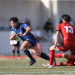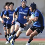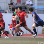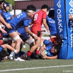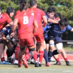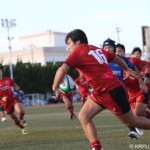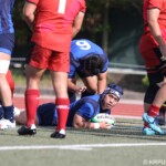 前半終盤にもDaigasが追加点を上げていく。37分、右隅ゴール前、3番PR大崎雄広が密集の左サイドをこじ開けてトライ。(G不成功、0−15)