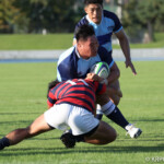 第2戦目ということで、当然勝つための準備を十分にして試合に臨んだのですが、やはりコンタクトやセットプレーの部分で京産大さんはわれわれよりもレベルが上だった。その一つ一つの積み重ねが失点につながったのかなと思います。ただ、この得点差が京産大との差か?というと、私はそうは思っていません。まだまだファイトできる部分が沢山あったと思います。後半はラストワンプレーでトライを獲られたが、そこまではほぼ互角の戦いをしていた。後半40分の時間帯を80分間積み重ねていくということがわれわれの課題だと思っています。