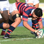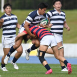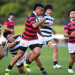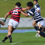 19分にはWTB⑪高井良成、25分に⑭シオネと両ウイングがそつなくトライを獲る(ともにゴール成功)。(75-10)