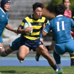 34分に再度立命大が自陣から攻め途中出場したWTB㉓吉本匠希がパスを繋ぎ、WTB⑪御池蓮二がタッチライン沿いを走り最後はパスを受けたSO⑩山下が左中間にトライ、GKもCTB⑫宮嵜が成功し逆転する。22-20