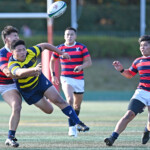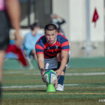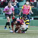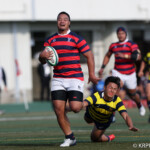 前半戦の重要な試合、スクラムでプレッシャーを受けるのではないかということでその準備もしてきたのですが、やはり(想像以上というか)フィジカル面でプレッシャーを受けました。ただ、前半の終盤で2つトライを獲られたのが勿体なかった。(そこまで)何とか食らいついて行けていたのですが…。なかなか思うように攻撃ができなかったというのが正直なところです。立命館は選手権に向けて一試合一試合が成長の場と捉えています。次の関西学院、摂南大学と重要な試合が続いていくのでそこに向けてしっかり準備をしていきたいと思います。