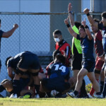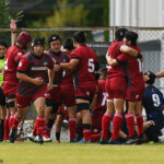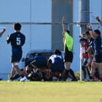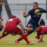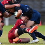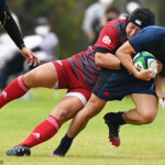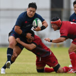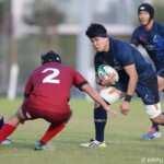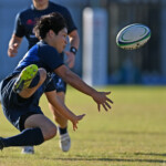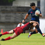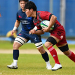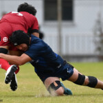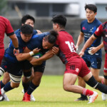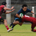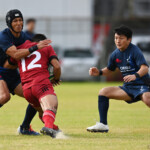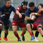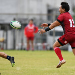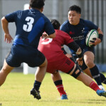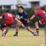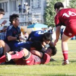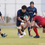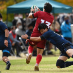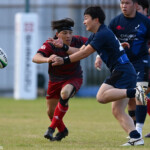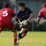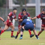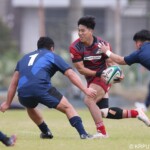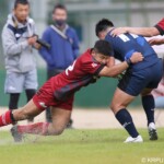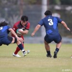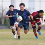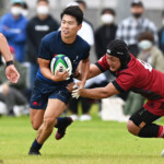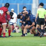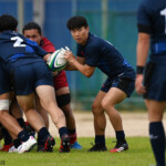後半の10分、島津製作所が22ⅿ中央ラック付近から右へ展開、大外で待ち受けていた8番藤井颯が相手でフェンスを引き裂き右中間に持ち込む。ゴールも決まって14-7。