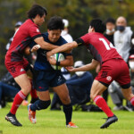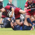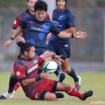 さらに44分には島津製作所は自陣で痛恨の反則を犯してしまう。中部電力はゴール前ラインアウトからサイド攻撃を重ね最後に22番鬼木秀一が同点に追いついた。10番犬飼が冷静にゴールを決めて劇的な逆転を島津製作所からもぎ取った。