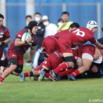 31分、中部電力が島津製作所と同じパターンでゴール前ラインアウトから、8番高田将脩が左中間にトライし、10番犬飼諒二がゴールを決め7-7とイーブンに戻して折り返す。