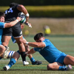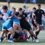トライを伺う機会では、両チーム、ディフェンスで踏ん張る。