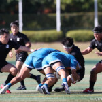 天理大学さんのフィジカルの強いプレーに対して引かないということをテーマとして、そしてこちらの強みであるセットプレー、特にスクラムでプレッシャーをかけていこうとゲームに入りました。ゲームの入りはこちらの思うとおりに進められましたが、相手がシンビンで14人になったところで取り切れなかったのが大きな敗因だと思います。