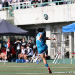 前半唯一の得点は、天理大。前半34分、天理大は、相手陣22m外側右タッチラインから左へ展開、22m内側中央での近大のホールディング(ペナルティー)から、ペナルティーキックを選択し、⑩福本が決め、3-0とした。