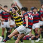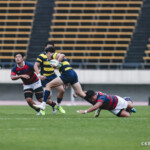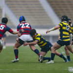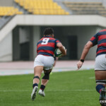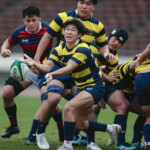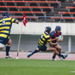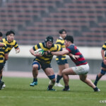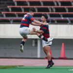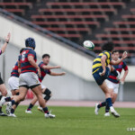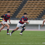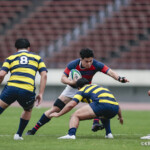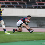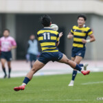 後半に入り6分に今度は関学大が先制トライをあげる、立命大のお株を奪うようなゴール前ラインアウトから2番平生翔大が押し込んだもので17-10と初めてリードする、その後、関学大は31分に20番國本周亮が中央へトライ、ロスタイムの46分に10番泉谷がダメ押しのトライをあげ、みずからゴールも決め31-10で立命大をノートライに抑えて勝利、大学選手権出場へ大きく前進した。