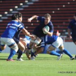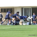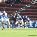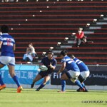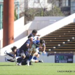 後半31分、相手陣22m内でペナルティーを得るとスクラムを選択、アドバンテージを得ながらフェイズを重ねると㉓宗貞が抜け出し中央にトライ、コンバージョンも成功し26-25と再逆転に成功する。