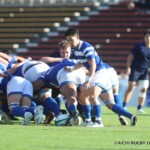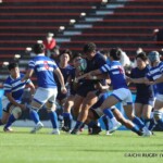 前半20分、相手陣ゴール前のラインアウトモールで前進すると、最後は⑦國分が左隅にトライ、5-7 と追撃する。