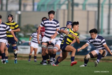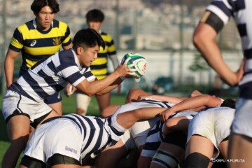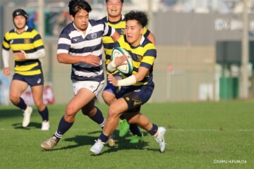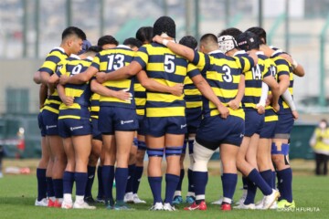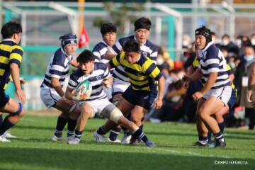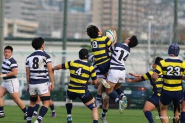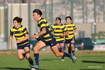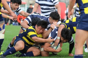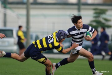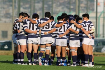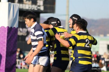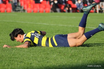 終盤39分に関大(SO⑩池澤佑尽トライ、ゴール成功)、41分に立命大(WTB⑪御池蓮二トライ)とスコアは動いたが、ゲームセット。(14-45)
