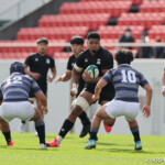 天理は両サイドに強いランナーを置いているので、そこに対して良いボールを運ばせないかと言うプランを組んだ中で、しっかり前に出てタックルを二人で入って早く立つと言う所を徹底して行こうと言う事をグラウンド上でしっかりやってくれた。