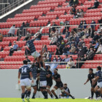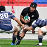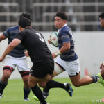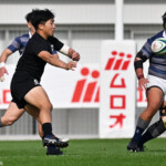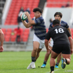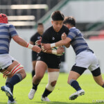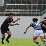 天理大は後半からも得意の展開ラグビーで攻めるがパスミスでチャンスを潰す、