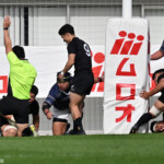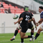 21分には天理大が敵陣20m左ラインアウトからフェーズを重ね最後はWTB⑭ナイバルワガ トマシからFB⑮本田飛翔に渡りオフロードパスを受けたCTB⑬上野颯汰が右中間にトライ、GKもSO⑩福本が成功。14-21