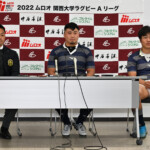 本日はありがとうございました。試合を通してアタックでもセットプレイでもプレッシャーを掛けて行く予定だったが、逆にプレッシャーを掛けられてしまいモールディフェンスでも対応が出来ず多くトライを取れてしまったので、この1試合に掛ける思いが同志社の方が上回っていた。次のゲームに向けてしっかり反省して準備して行きたい。