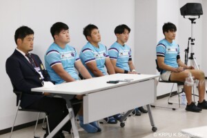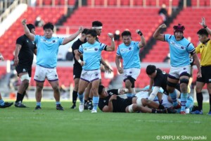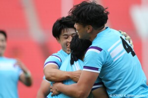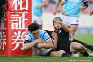 対抗戦を戦っていく中で結果はなかなかついてこない部分はあったんですが、やっていくなかで自分たちの中でも手ごたえは確実にあって、フォワードのセットプレーの部分であったり、ほんとそこは自分もここにいる肥田とかフォワードの八木澤としっかり話し合って自分たちの強みっていうのは理解していたのでそこもしっかり継続して今日ここでまた出せたかなと思います。