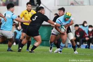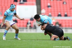 僕たぶんボールキャリー一回もしていないと思うのですが、そうなったときに自分にできるのはディフェンスで、皆が疲れているときに間を埋めて、相手がここに来ると思うところに人一倍走って埋めることが今日の僕の仕事できたことだと思うので、その前の段階で止めてくれている味方もいるし、自分がしっかり仕留めて取りきるぞという気持ちを前面に出してやってきました。